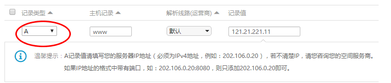 下面是一个解析范例:www.abc.com 指向 121.21.221.11