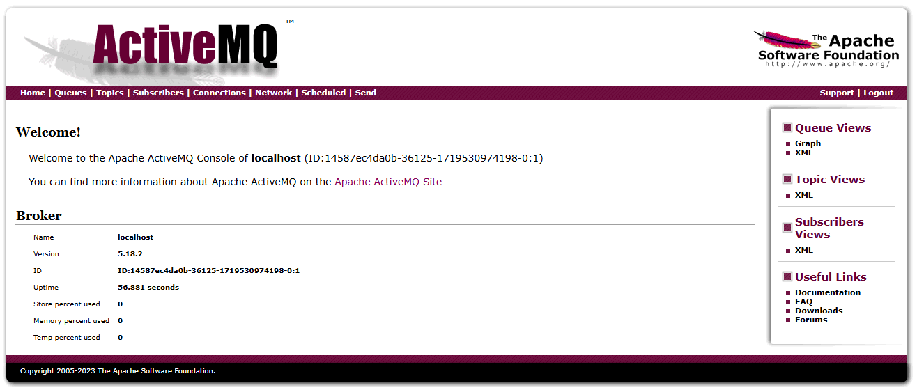 Use a local computer browser to access ActiveMQ, where you can see the Welcome page