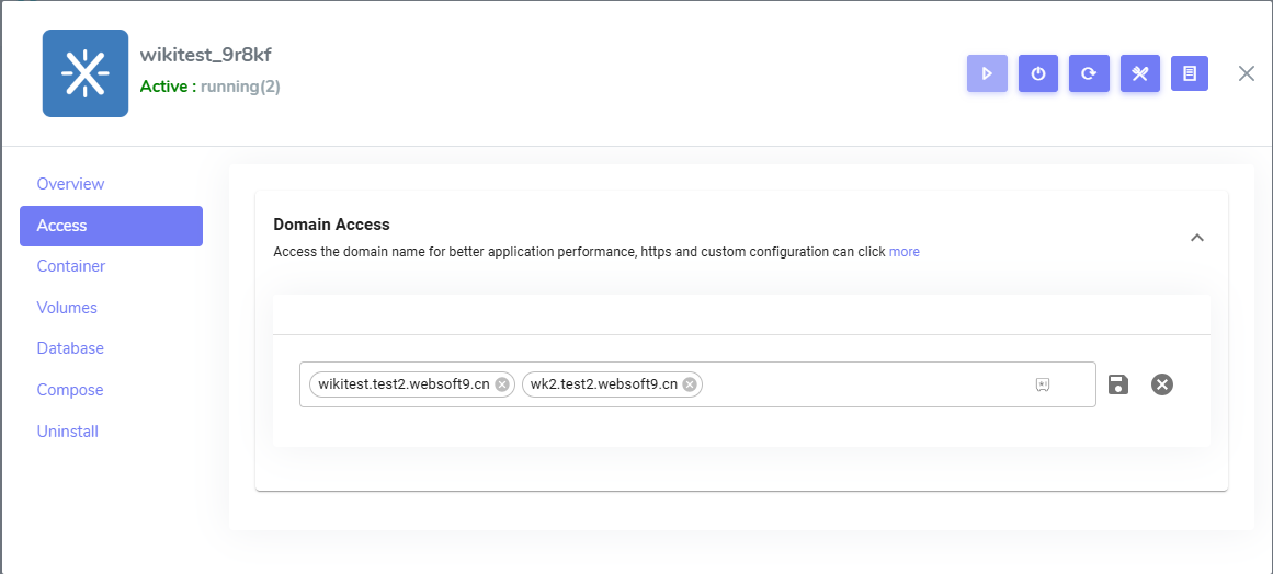 Login to Websoft9 Console and open the Access tab of application management interface from My Apps