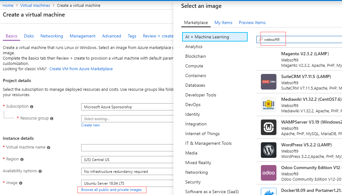 For users of the Microsoft Azure business cloud, Websoft9 has a pre-configured offering in the Azure Marketplace. This tutorial describes installing Websoft9 Enterprise Edition in a single Virtual Machine (VM).